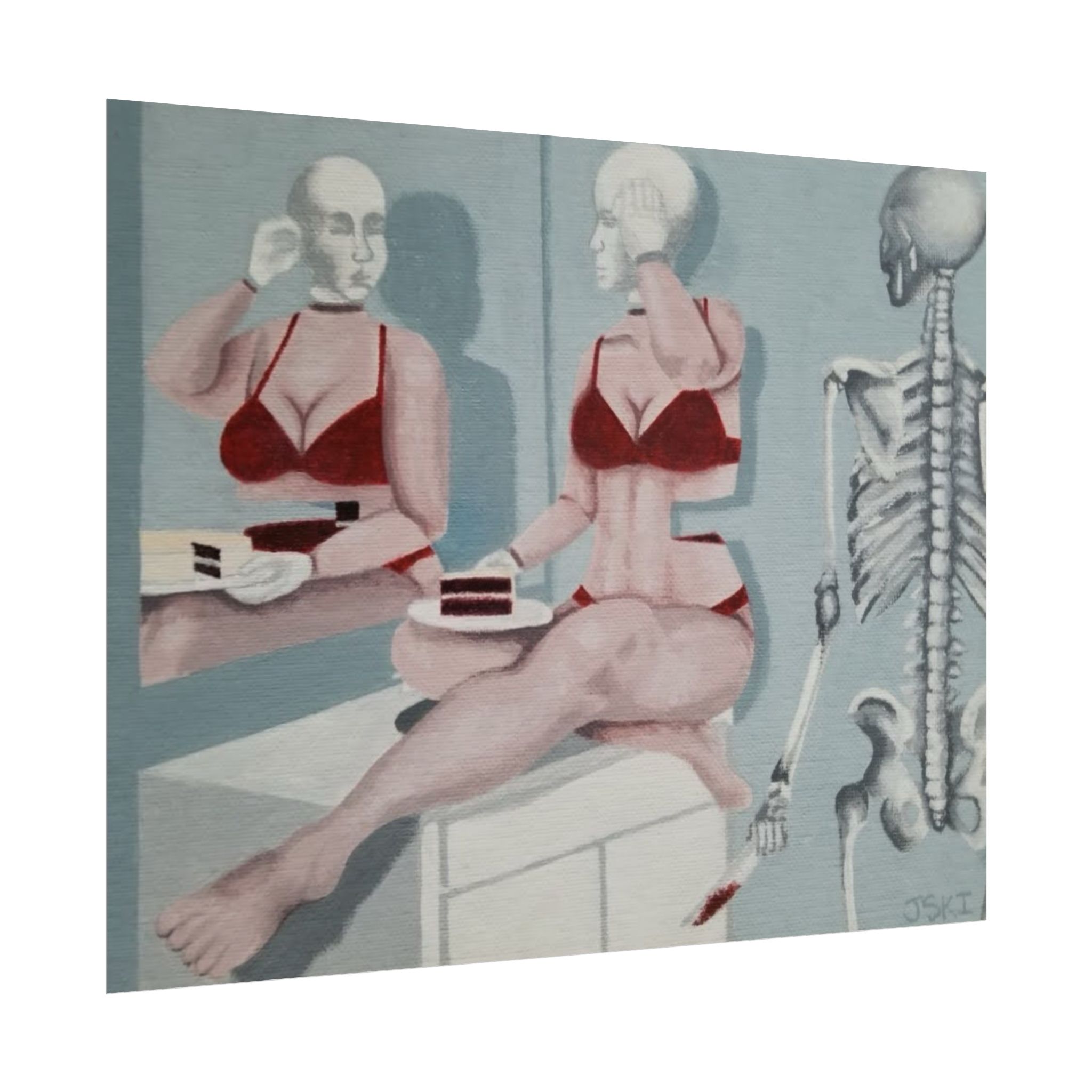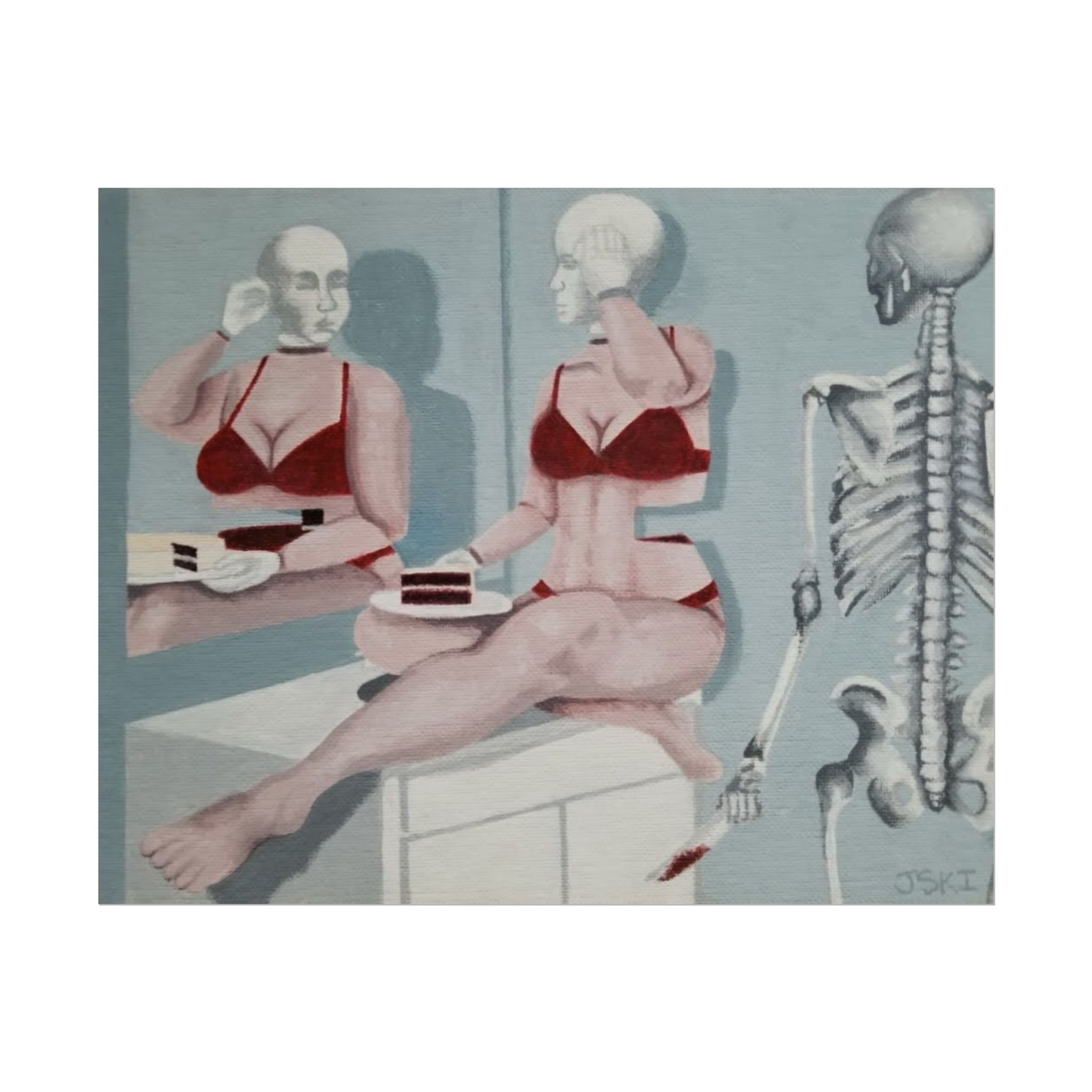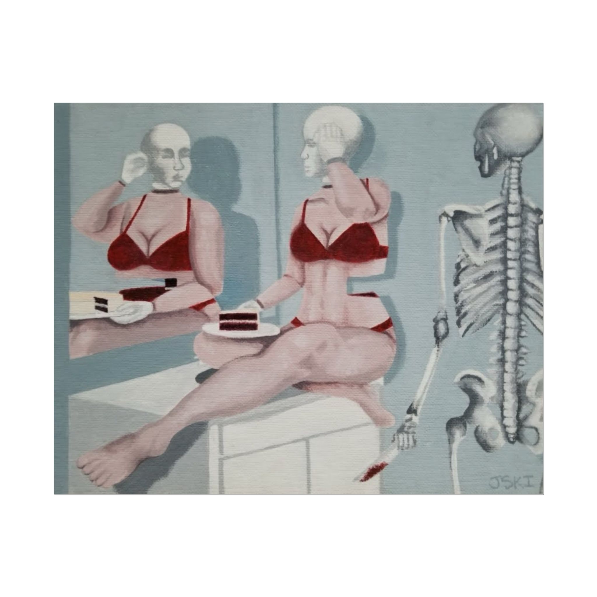 This piece, originally acrylic paint on 8×10″ canvas board, was featured at the Dali Museum during the student surrealist exhibit in 2021. It was accompanied by the text