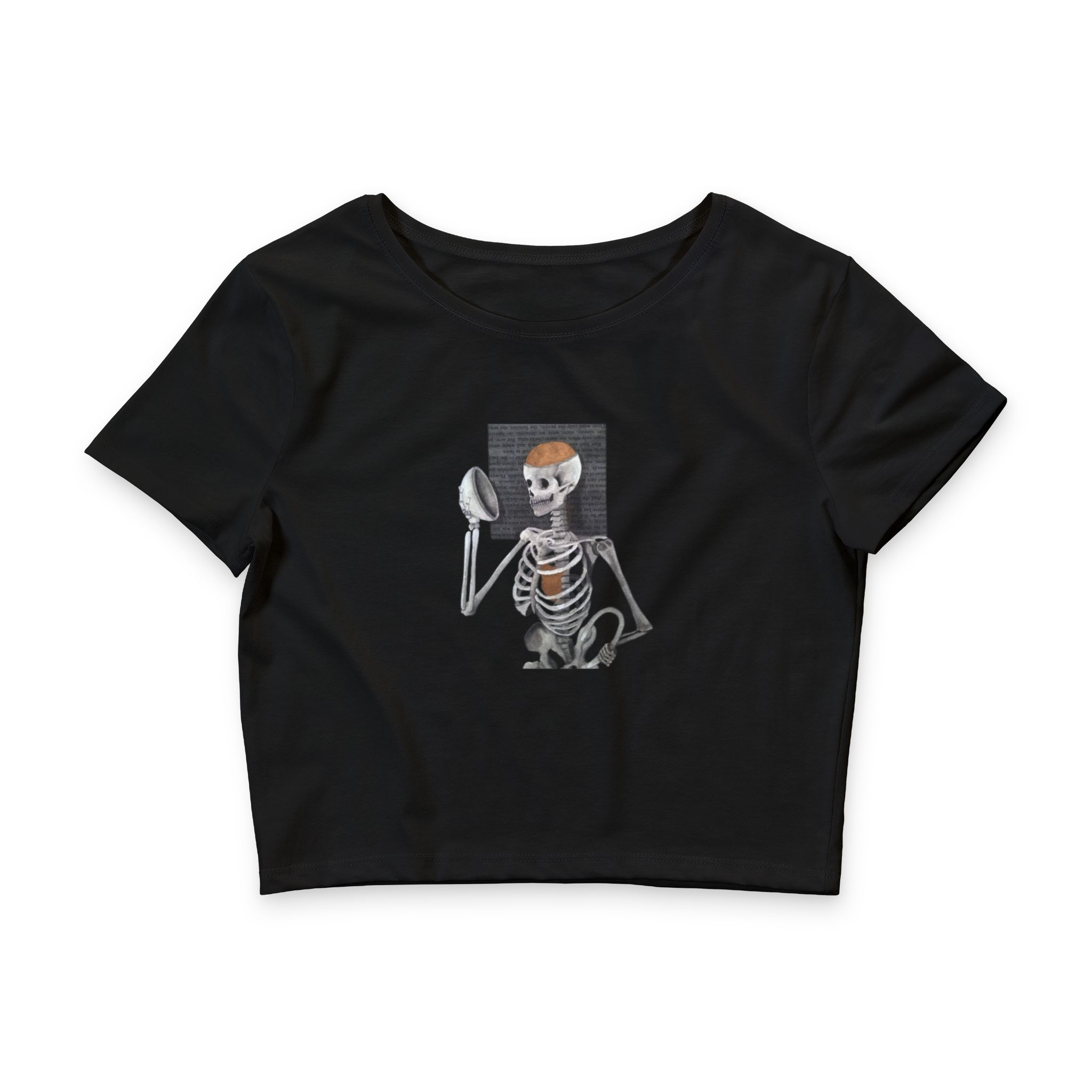 Stay spooky stylish as this crop tee pairs perfectly with pants, skirts, or shorts. With its soft fabric and flattering fit, it keeps you comfortable all day while making you look fall fabulous anywhere you go.