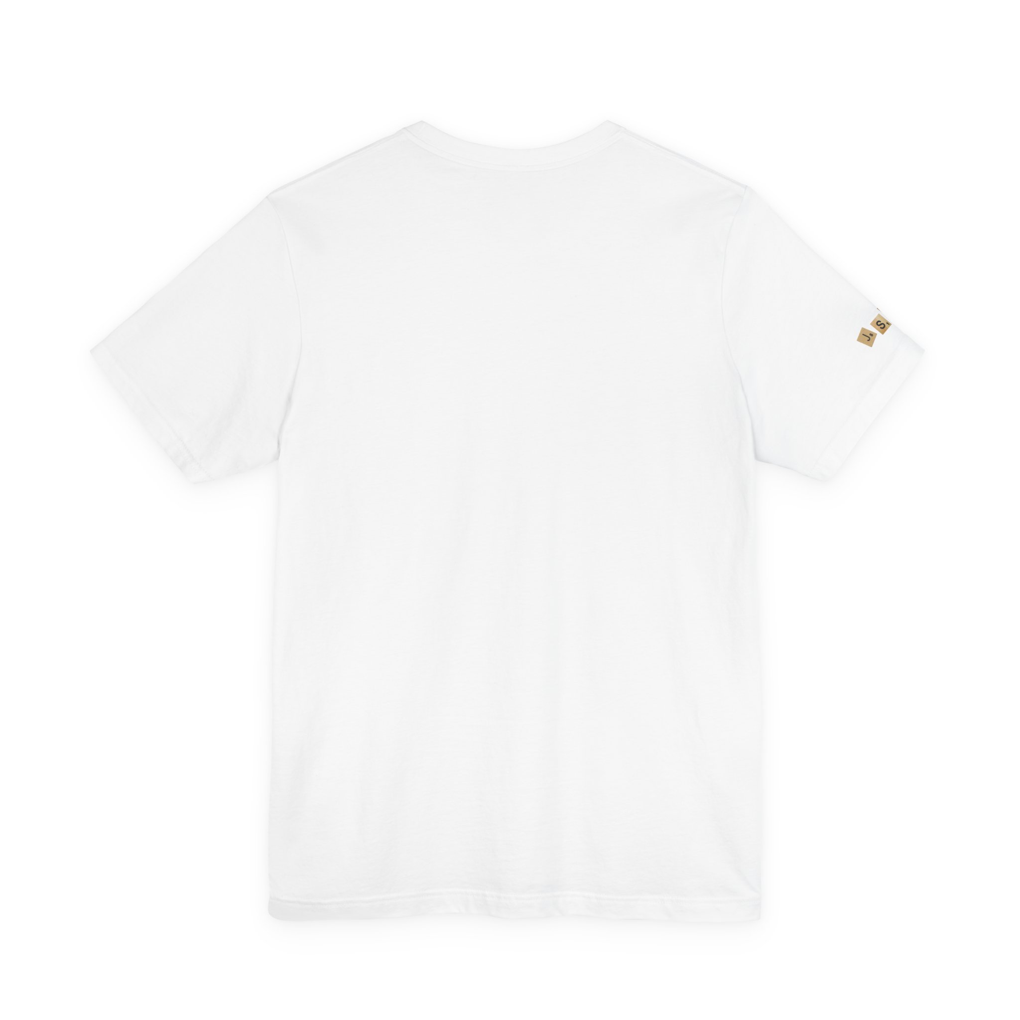 This classic unisex jersey short sleeve tee fits like a well-loved favorite and features original artwork “Scrambled” and JSKI scrabble tiles on the sleeve.
