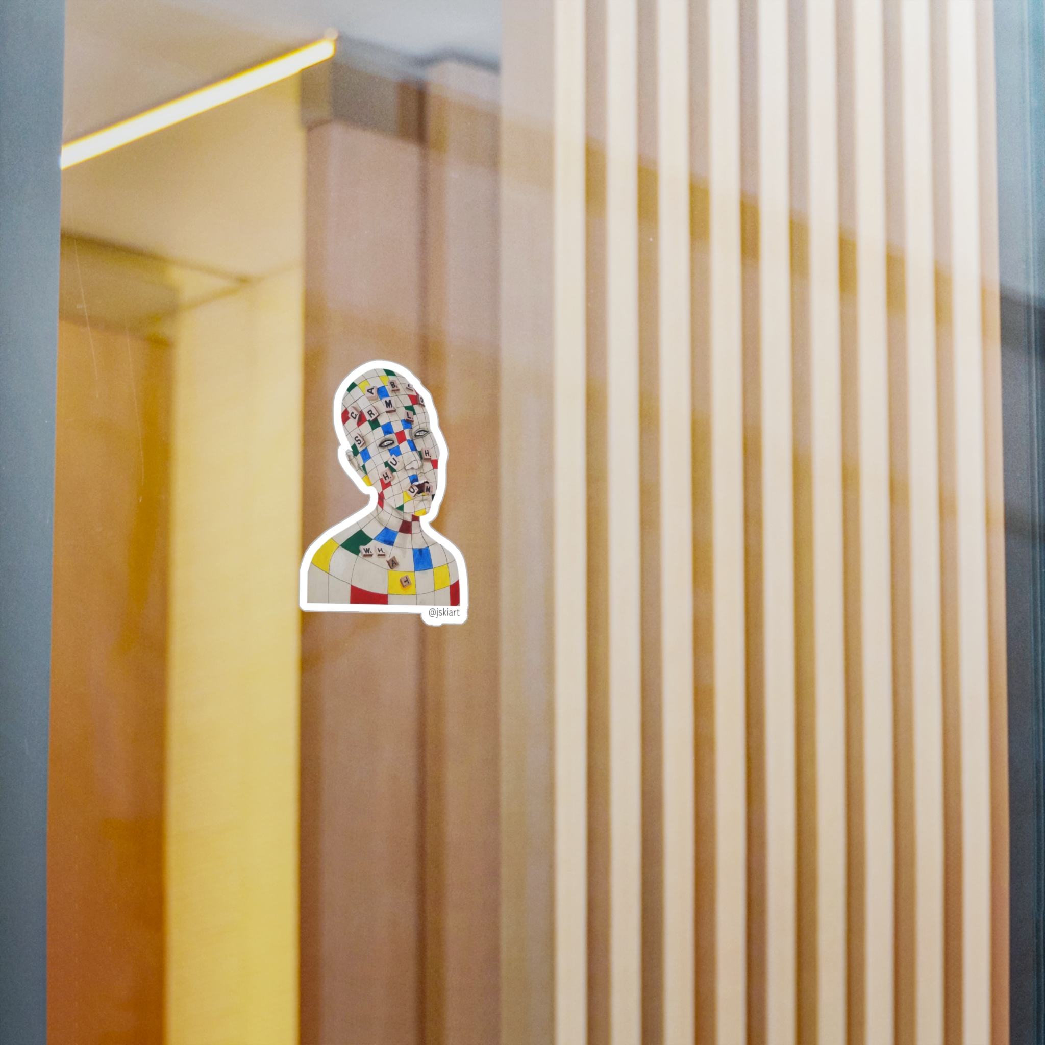 This head is from my original painting “Scrambled,” representing the return to standardized education after a traumatic brain injury, in part of a larger portfolio.